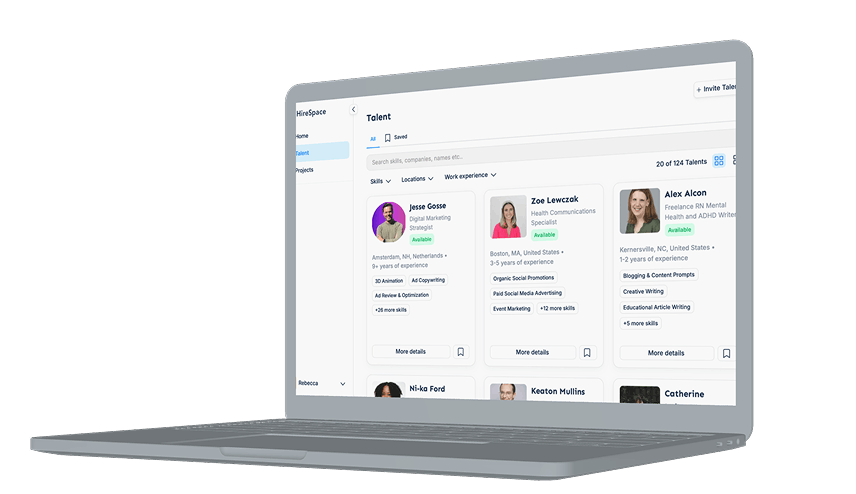 HireSpace is a premier, rigorously vetted talent marketplace dedicated to health and medical communications, enabling organizations to hire, onboard, and manage projects seamlessly within one platform. We connect top freelancers with healthcare and medical organizations to elevate messaging through high-quality content, strategic marketing, and regulatory compliance expertise.